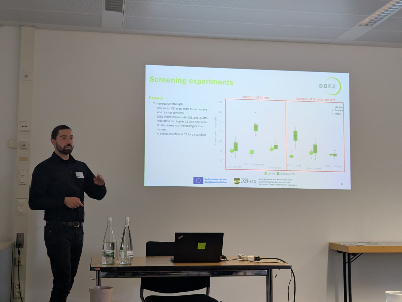 Die Arbeitsgruppe Mechanische Veredelungsprozesse war durch Nikolaus Manolikakes vertreten, der einen Vortrag über seine Forschung im aktuellen Projekt BioFe vorstellte. Dabei ging es um den Einsatz organischer Bindemittel in der Eisenerz-Agglomeration.