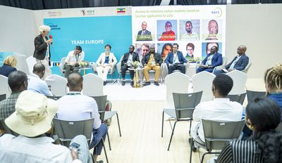 This question was also dealt with in parallel at the Team-Europe Pavilion where DBFZ had organised a panel discussion on access to voluntary carbon markets based on biochar application to soils. The joint photo with organizers and experts of both events is a showcase of the multi-stakeholder partnership on the advancement of biochar-based fertilizer as a potentially transformative innovation in Africa.