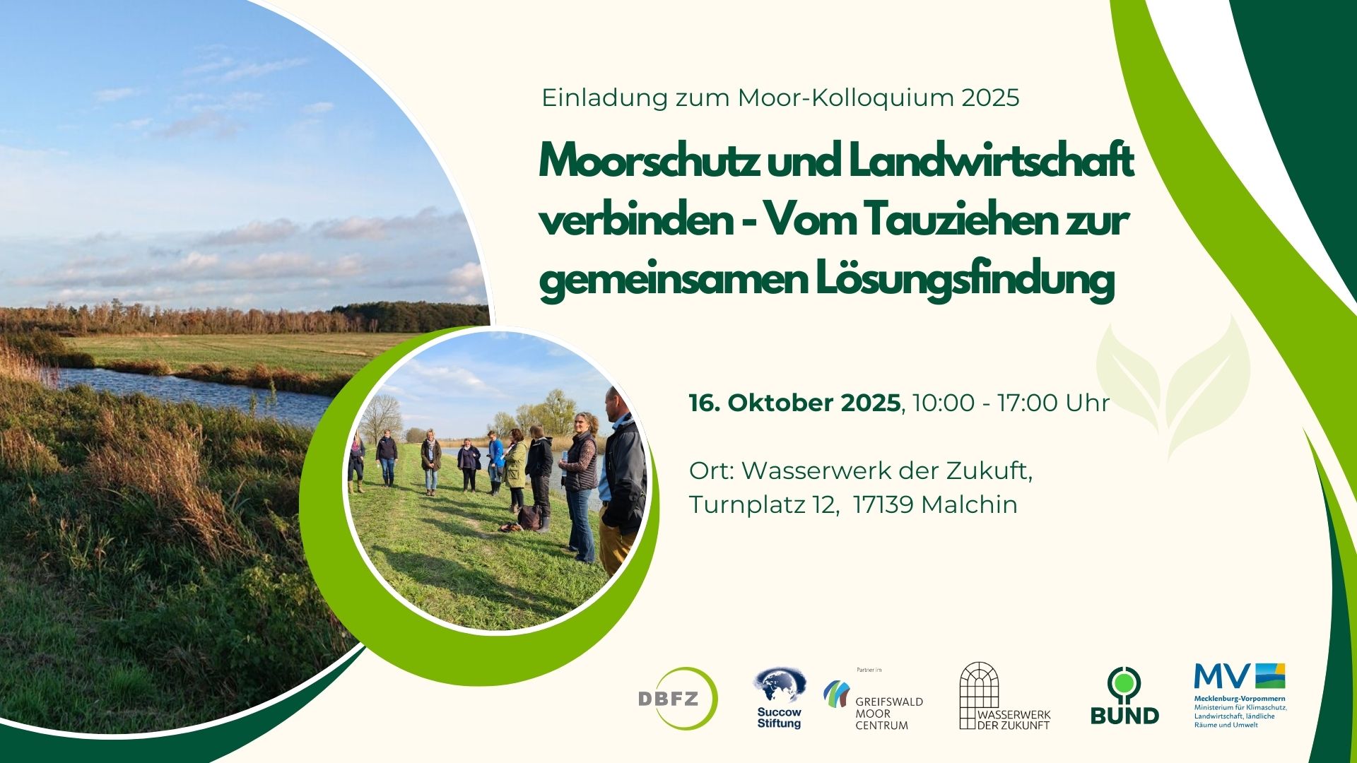 Das Moor-Kolloquium 2025 findet am 16. Oktober 2025 von 10:00 bis 17:00 Uhr in Malchin statt und widmet sich dem Motto "Vom Tauziehen zur gemeinsamen Lösungsfindung". Die Veranstaltung bringt Landwirtschaft und Moorschutz zusammen, um aus dem bisherigen Interessenskonflikt heraus konstruktive Lösungsansätze zu entwickeln. Das Ministerium für Klimaschutz präsentiert aktuelle politische Entwicklungen und neue Fördermöglichkeiten, während Wissenschaftler und Unternehmen konkrete Umsetzungserfahrungen mit Paludikultur und nachhaltigen Wertschöpfungsketten vorstellen. Im Zentrum steht die Frage: Wie können alle Beteiligten gemeinsam vorankommen und praktikable Lösungen finden? Anmeldungen sind bis zum 2. Oktober 2025 unter diesem Link möglich.
