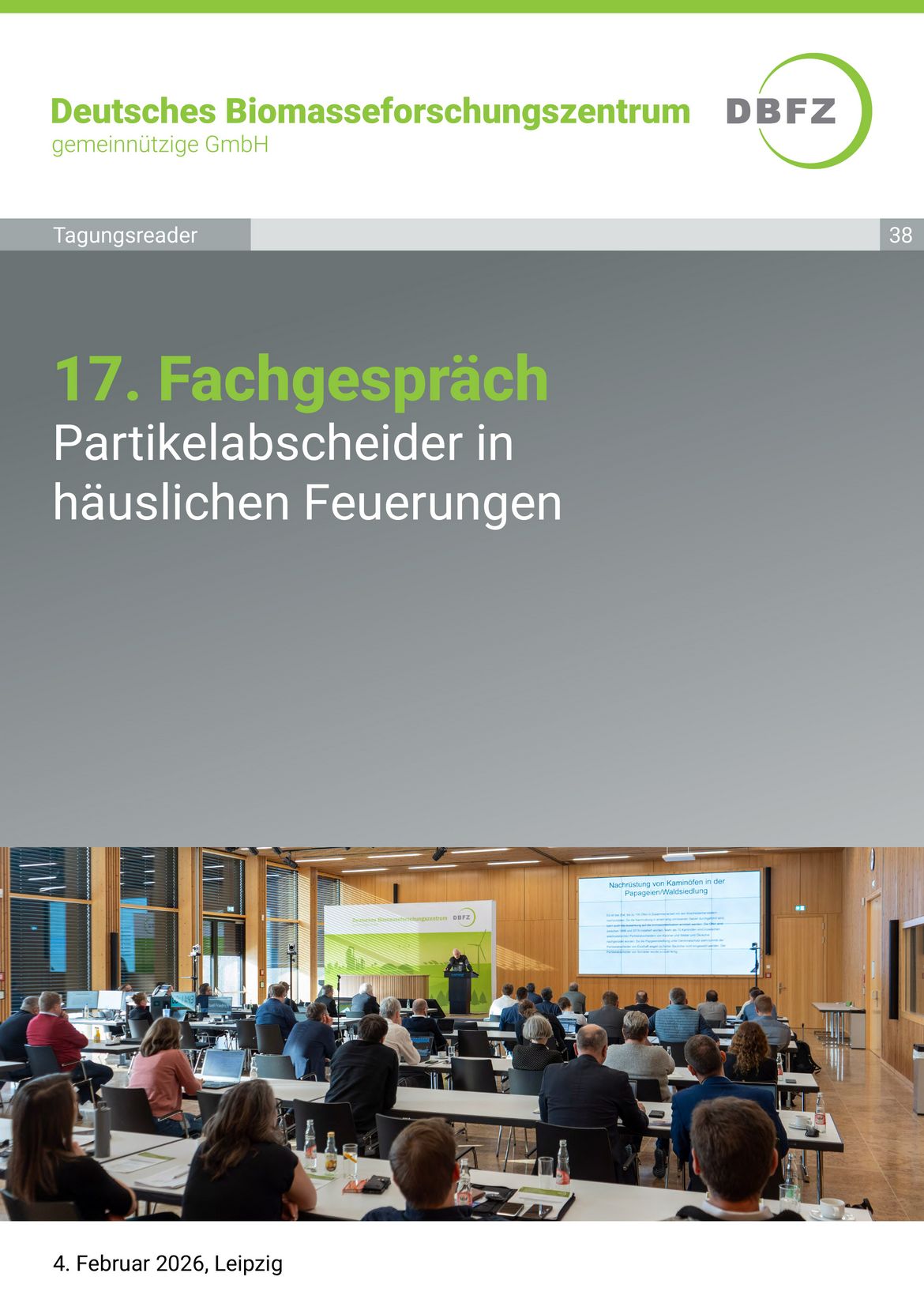 Die 17. Ausgabe des Fachgesprächs "Partikelabscheider in häuslichen Feuerungen" fand in Zusammenarbeit mit dem Technologie- und Förderzentrum Straubing (TFZ) am 4. Februar 2026 am DBFZ in Leipzig statt. Der Tagungsreader stellt auf rund 100 Seiten Abstracts und Folien der Referent:innen zur Verfügung.